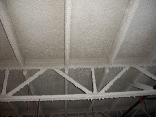 Mortero de Lana de Roca aplicado sobre Cubierta, Cerchas y Vigas de nave de estructura metálica.