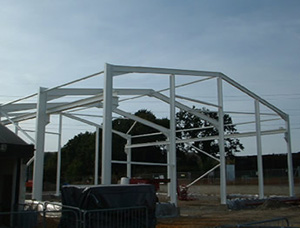 Ignifugación de vigas con mortero de Lana de Roca sobre estructura metálica.